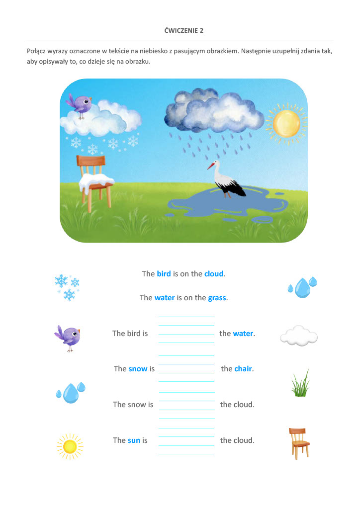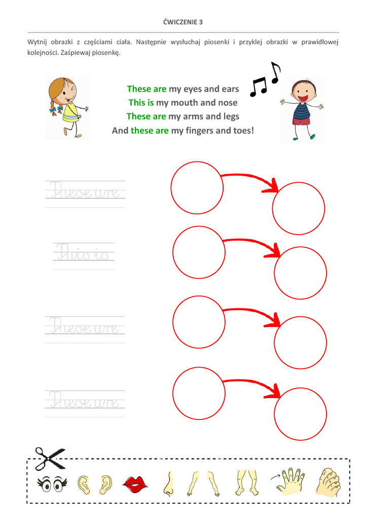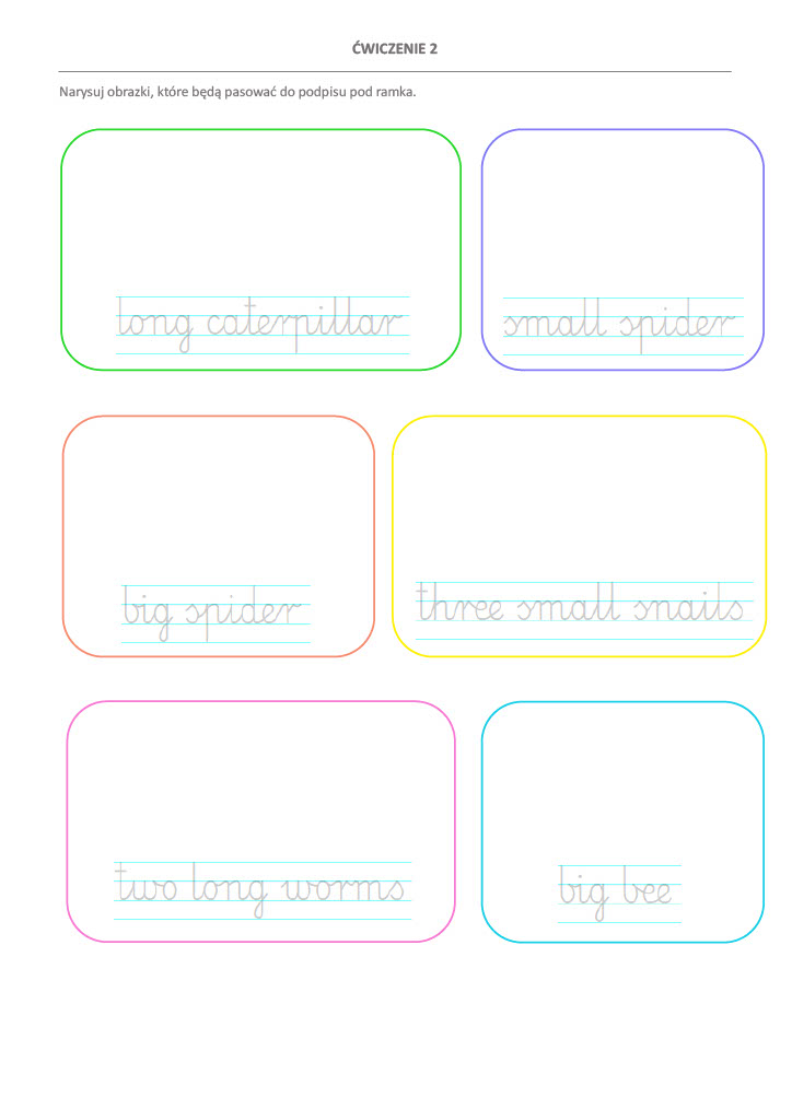 - Praktyczne zadania rozwijające słownictwo i umiejętność budowania prostych zdań.