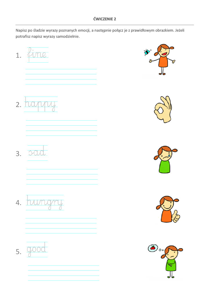 - Zadania wspierające naukę pisania.