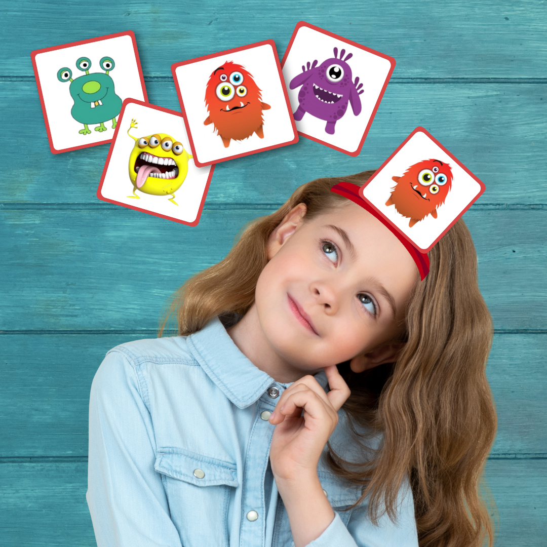 Zestaw kart do gry w „czółko” w formie pliku PDF. Do wyboru zestawy z potworkami lub czynnościami, które możesz drukować i kopiować dowolną liczbę razy.