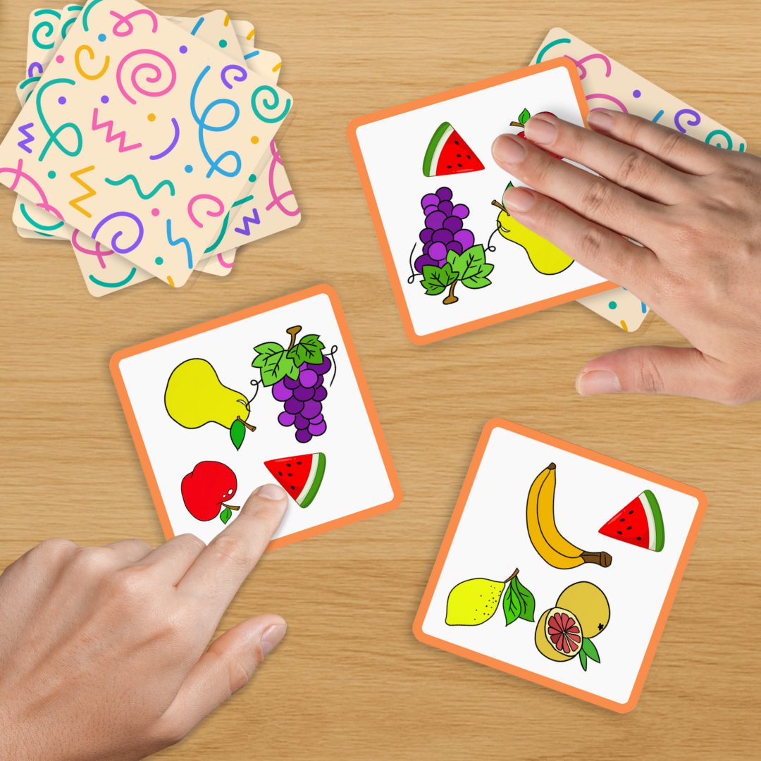 Plik PDF możesz drukować wielokrotnie, dopasowując liczbę kart do wielkości grupy. Dobble świetnie sprawdzi się nie tylko w klasycznej wersji gry, ale także jako baza do ćwiczeń rozwijających refleks, koncentrację i mówienie.